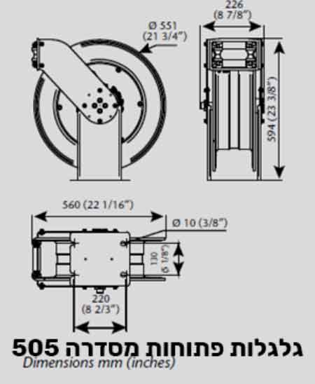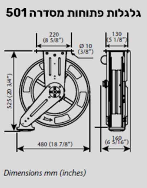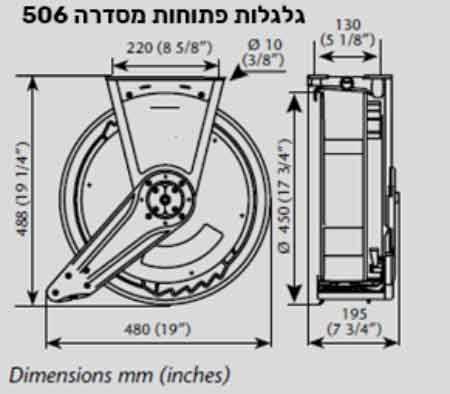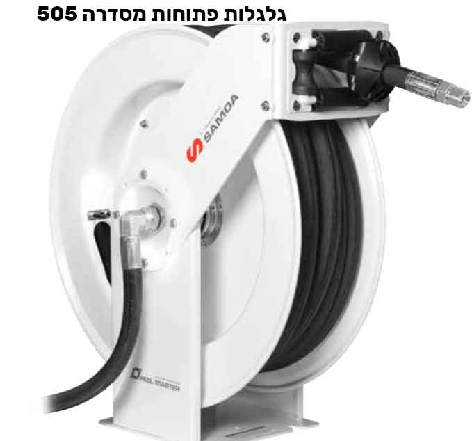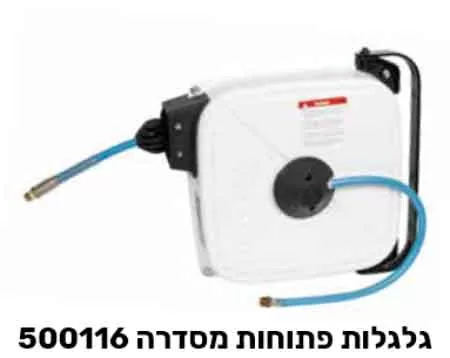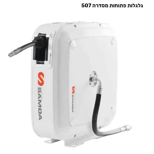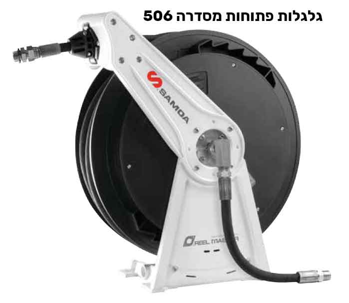 גלגלות פתוחות מסדרה 506 גלגלת עם בסיס וזרוע אלומיניום, קלה וחזקה במיוחד מוחזרת קפיץ עם מעצור, אורך צינור 15 מ' הזרוע מתכווננת וניתנת לקיבוע לפי הדרישה. מגיעה עם צינור הזנה 0.8 מ'.