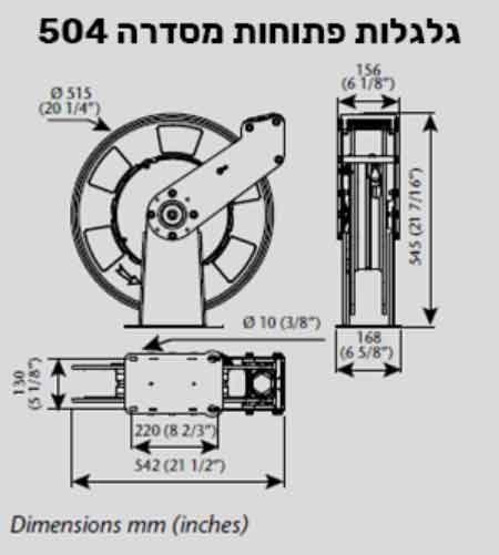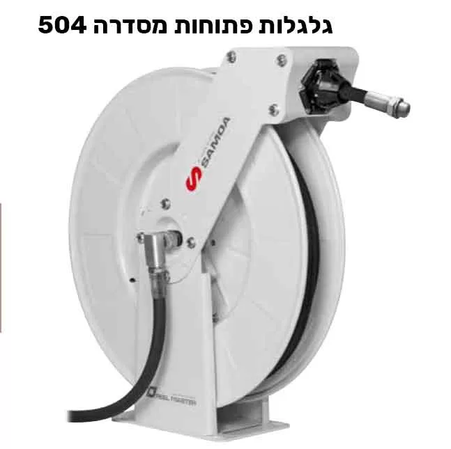 גלגלות פתוחות מסדרה 504 גלגלת מפח חזקה במיוחד, מוחזרת קפיץ עם מעצור צבועה אפוקסי עם צינור 15 מ' עמידה בתנאים קשים. מגיעה עם צינור הזנה 0.8 מ'.