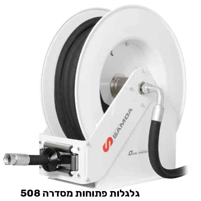 גלגלות פתוחות מסדרה 508 גלגלת HD קשוחה במיוחד עשויה מפח לשימושים במקומות קשים מוחזקת קפיץ עם מעצור לשימוש עם צינורות 1/2" ו 3/4"  ו 1" עד 30 מ'. מגיעה עם צינור הזנה 0.8 מ'.