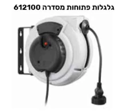 גלגלת חשמל 612100 אורך כבל 15 מ' עם הגנת חום , 1.5X3 מ"מ  מותקנת על ציר.