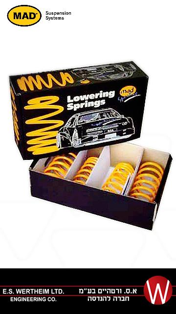 קפיצי הנמכה לרכב מנמיכים את גובהו של הרכב, מדובר בקפיצי הנמכה המיוצרים תחת אבטחת איכות ISO, מאפשרים מראה ספורטיבי ושיפור אחיזת הכביש, קפיצי ההנמכה לרכב של MAD מיוצרים בהתאמה אישית לכל רכב!