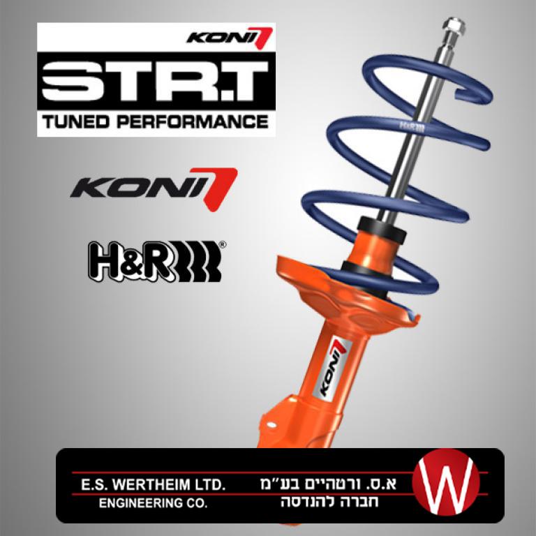בזכות קיט KONI STR.T שילוב הידע בין החברות נוצר קיט מושלם המתאים בצורה אופטימלית לרכב שלך, הנמכה של מרכז הכובד בשילוב שיכוך זעזועים משופר ומניעת זוויות גלגול שייקחו את הרכב שלך לרמת ביצועים ואחיזה חדשה ומרגשת.ערכת STR.T של חברת KONI, בולמי זעזועים מעוצבים בהנמכת מותאמת אישית של חברת H&R. שתי החברות (KONI וH&R) בעלות ניסיון רב שנים במירוצי מכוניות, כמו בפורמולה 1 או ב- DTM. היתרונות עבור הלקוח ברורים. הניסיון שנצבר יחד עם ההתפתחויות הטכנולוגיות זורמות ישירות לפיתוח המוצרים של החברות. קוני של STR.T. בולמי זעזועים עומדים על החזקת כביש מושלמת, טיפול אופטימלי וכוח צנטריפוגלי עוצרי נשימה. בזכות מהירויות תגובה גבוהות מאוד של בולמי הזעזועים יכולים הנהגים לסמוך לחלוטין על הציוד שלהם אפילו במצבים מסוכנים. ניתן לבצע הנמכה של עד 40 מ"מ בהתאם לרכב, משמעות הדבר היא כי שום דבר לא עומד עכשיו בדרך, אם במהירות גבוהה על כבישים מתעקלים בשילוב של הנאת הנהיגה האולטימטיבית.